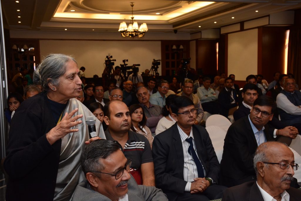 Mr N K Singh, Chairman of 15th Finance Commission having a light moment with Ms Praveen Mahajan, Mr Somesh Arora, former Commissioner of Customs & Central Excise.