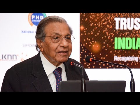 Mr N K Singh, Chairman of 15th Finance Commission having a light moment with Ms Praveen Mahajan, Mr Somesh Arora, former Commissioner of Customs & Central Excise.